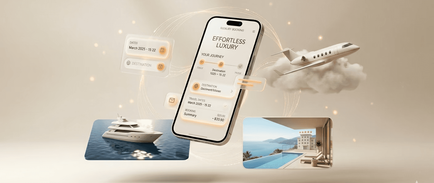 From private jets to exclusive stays and yacht charters, every detail is handled with precision, discretion, and unmatched care.